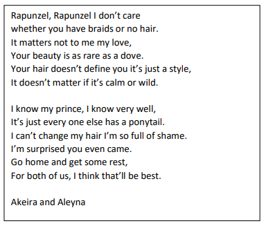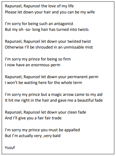 These are pictures and poems designed and written by a school in London inspired my poem Rapunzel, Rapunzel